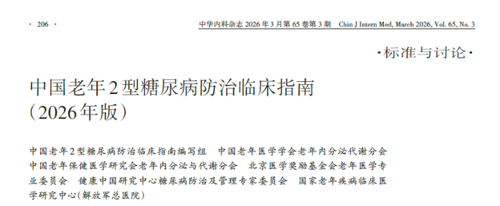 [1] 中国老年2型糖尿病防治临床指南编写组,中国老年医学学会老年内分泌代谢分会,中国老年保健医学研究会老年内分泌与代谢分会,等. 中国老年2型糖尿病防治临床指南(2026年版)[J]. 中华内科杂志,2026,65(03):206-255.